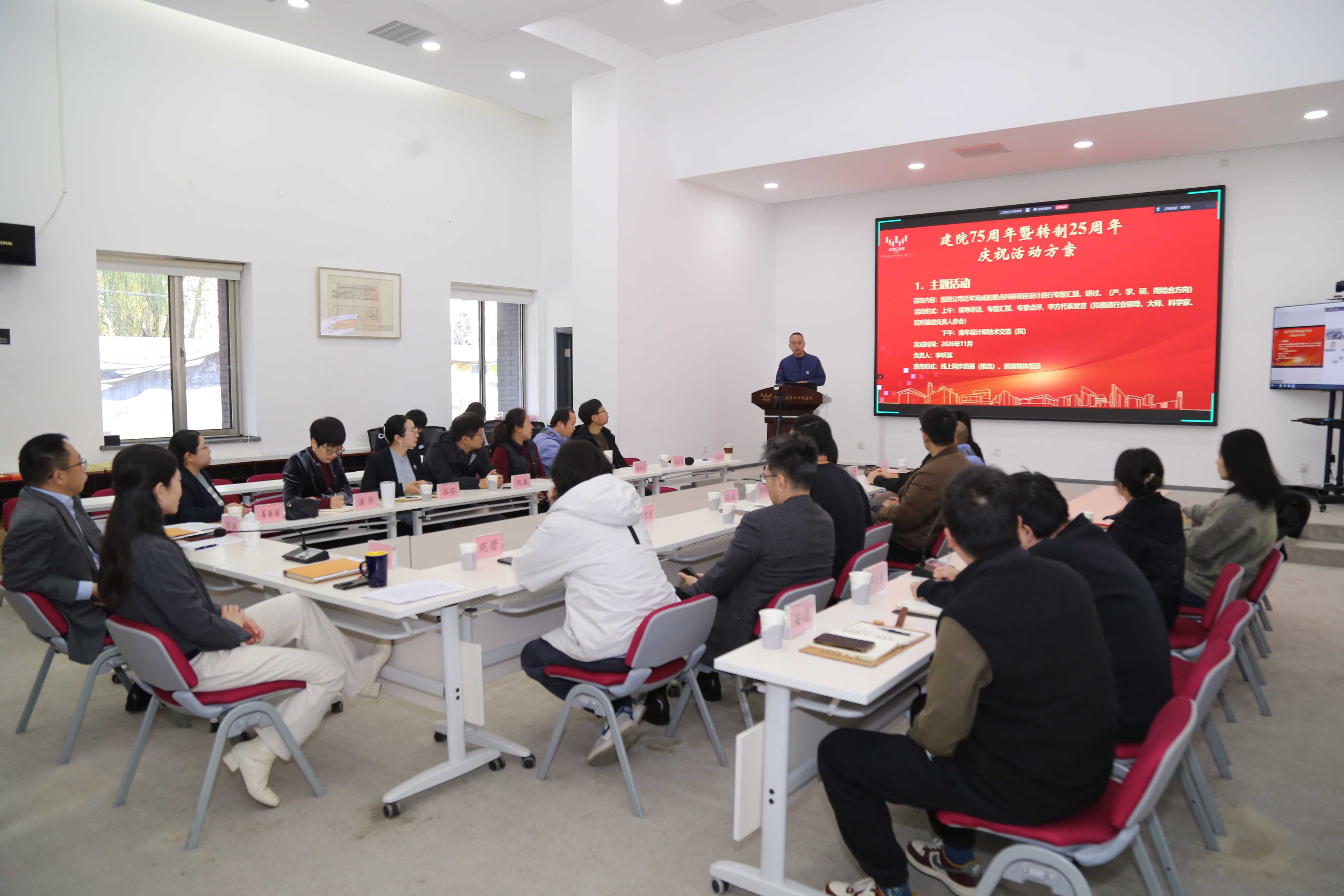 王志雄详细介绍了75周年院庆系列活动方案。与会员工结合自身工作经历,分享了与公司共同成长的感悟,并围绕院庆活动策划、企业文化建设和公司发展等提出了建议。